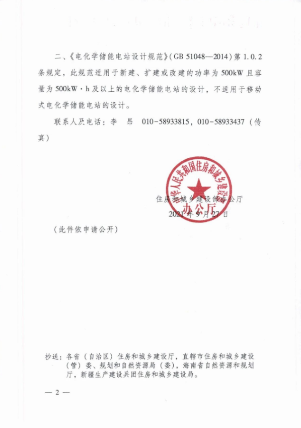 根據(jù)《住房和城鄉(xiāng)建設(shè)部辦公廳關(guān)于儲(chǔ)能電站消防設(shè)計(jì)審查驗(yàn)收有關(guān)事項(xiàng)的函》(建辦科函[2021]403號(hào))文件精神: