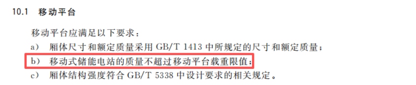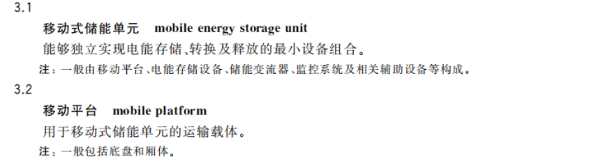 ?。?)《移動(dòng)式儲(chǔ)能電站通用規(guī)范》GB/T 42715-2023第3.1條、3.2條:移動(dòng)式儲(chǔ)能電站一般由移動(dòng)平臺(tái)、電能儲(chǔ)存設(shè)備、儲(chǔ)能變流器、監(jiān)控系統(tǒng)及輔助設(shè)備組成。其中移動(dòng)平臺(tái)一般包括底盤和廂體。
