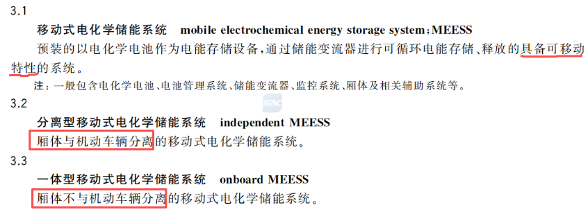 ?。?)《移動(dòng)式電化學(xué)儲(chǔ)能系統(tǒng)技術(shù)規(guī)范》GB∕T 36545-2023第3.1-3.3條:移動(dòng)式電化學(xué)儲(chǔ)能系統(tǒng)是具備可移動(dòng)性的系統(tǒng),分為一體型移動(dòng)式電化學(xué)儲(chǔ)能電站和分離型移動(dòng)式電化學(xué)儲(chǔ)能系統(tǒng)。